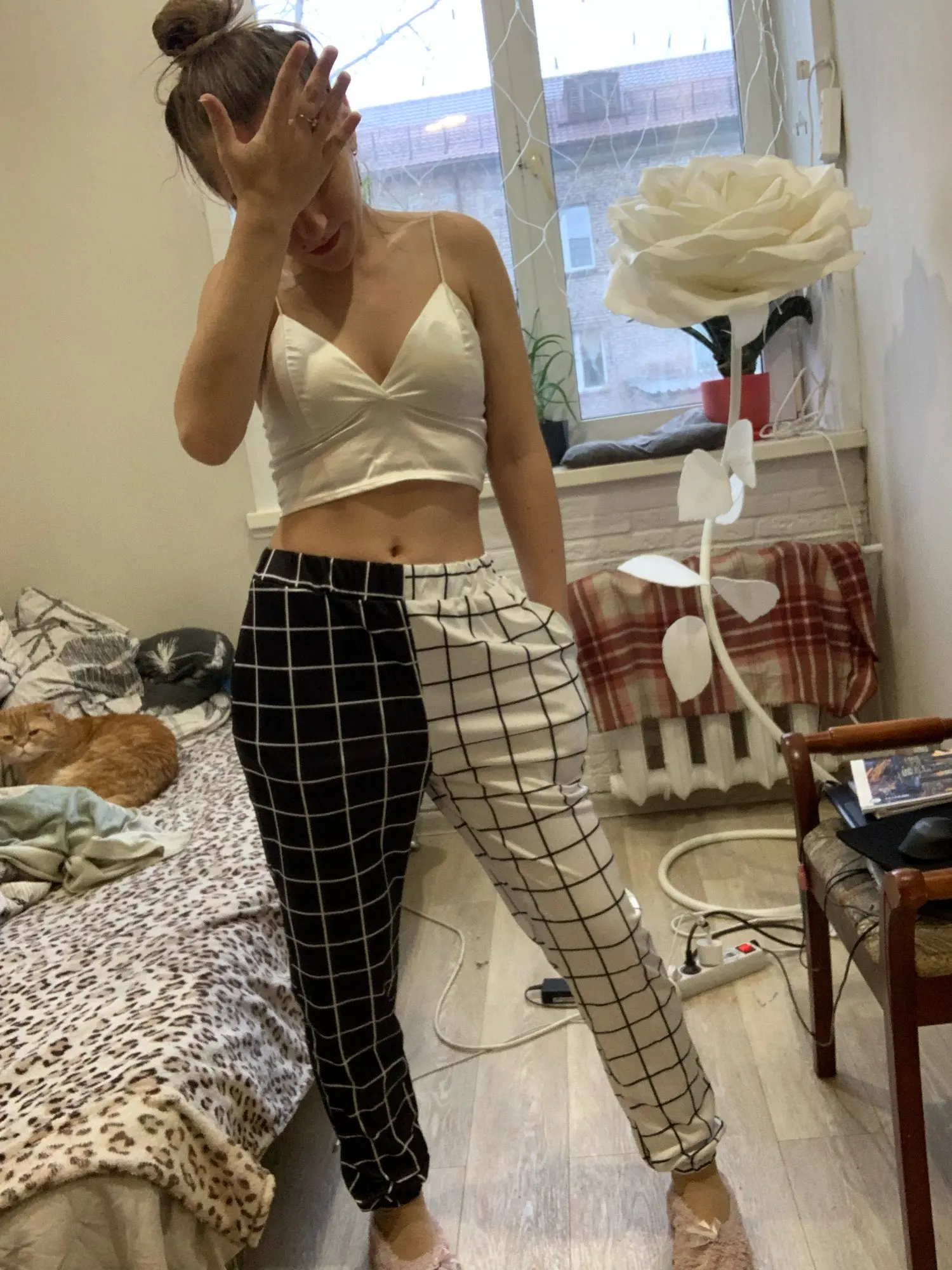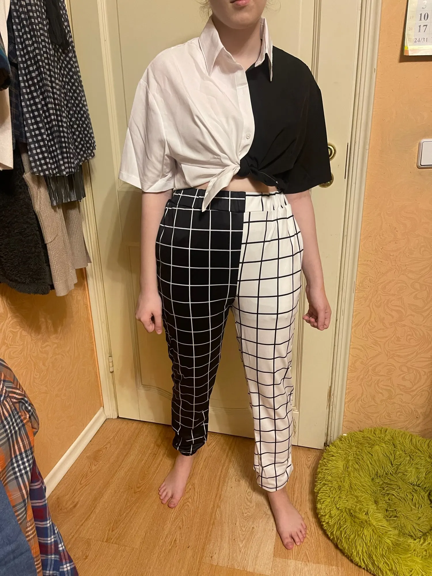 - Model Number: Women Vintage Plaid Patchwork Pants