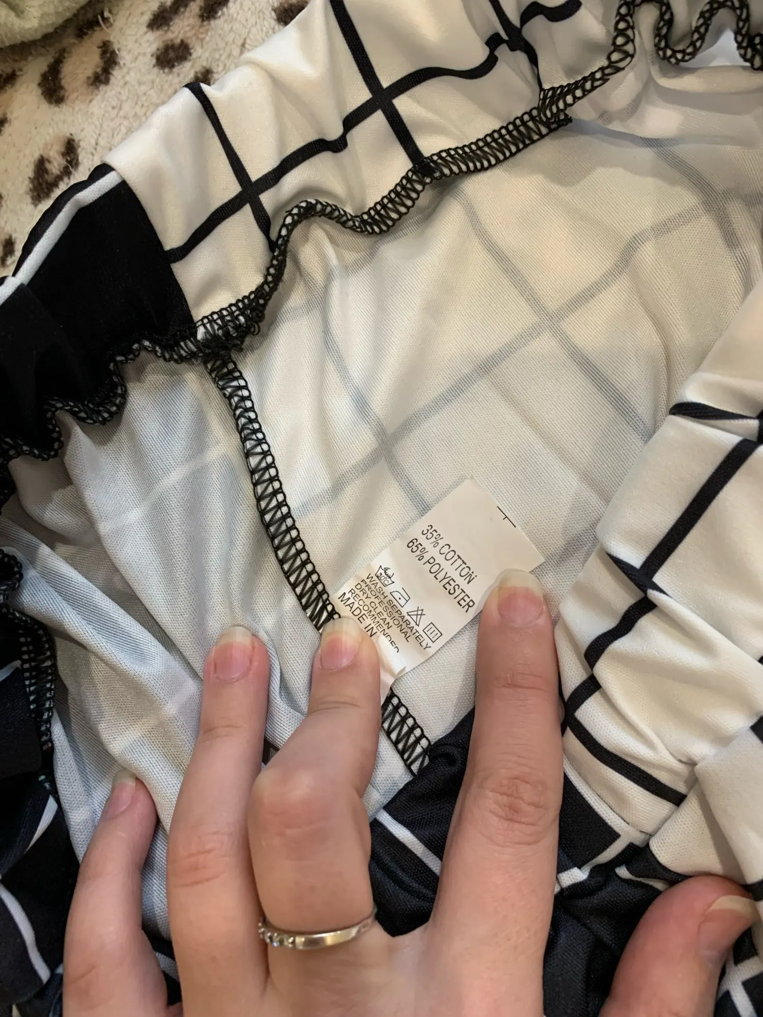 Pants synthetics, on an elastic band …. Daughters really needed to get quickly, tracked. Thank you. On the photo size M, my height is 174